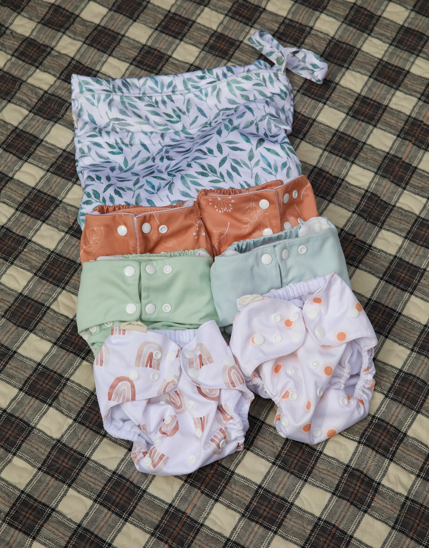We deliver your Welcome Pack on the first delivery. In here you’ll find a Little Droppings nappy bin, a beautiful batch of nappies (if you loan from us), a mesh bag and an info sheet.